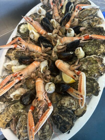 L’apéro marine comprends de quoi se régaler en plein été avec des fruits de mer frais et coquillages succulent, un plaisir du soir avec un bon verre de vin!